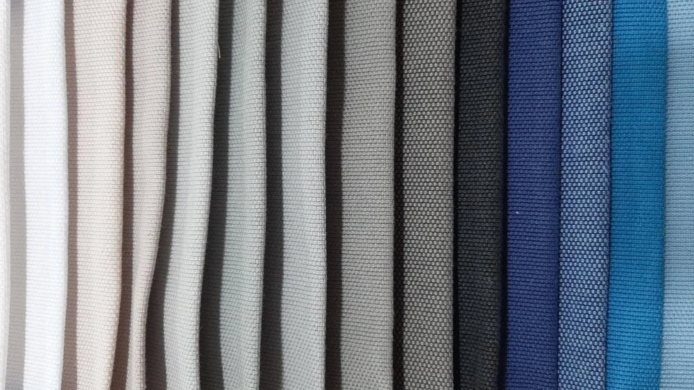 Tinte unite e melange, colori assortiti: bianco, panna, beige, tortora, giallo oro, arancio, arancio melange, bordeaux, rosso, ruggine melange, marrone, marrone melange, verde brillante, verdone, azzurro carta da zucchero, blu mare, grigio melange, nero.